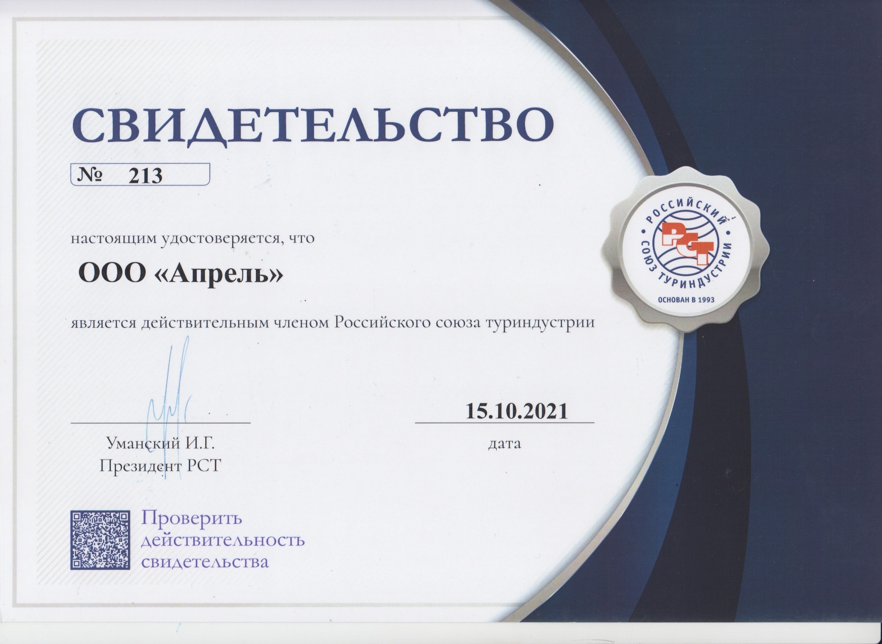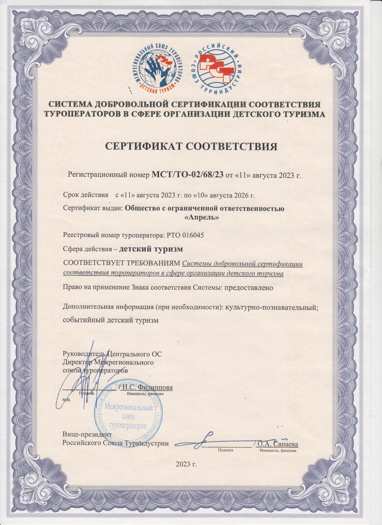 Наш номер в реестре РТО 016045