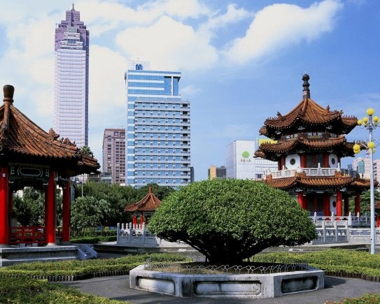 Образцом традиционной китайской архитектуры, построенным в не столь отдаленные времена, является Мемориальный Холл Чан Кай – ши. В нем сочетаются широкое применение белого мрамора и изящная крыша, повторяющая очертания крыши Храма Неба в Пекине. На территории мемориального комплекса расположены прекрасные Государственный концертный зал и Государственный театр , где проводятся выступления китайских и иностранных артистов . По контрасту , Мемориальный Холл Сунь Ят – сена построен в духе китайской дворцовой архитектуры . Это высокое и просторное сооружение , максимально вмещающее до 3 000 человек , включает также насчитывающую 140 000 томов Библиотеку доктора Сунь Ят – сена и картинную галерею имени Сунь Ят – сена .