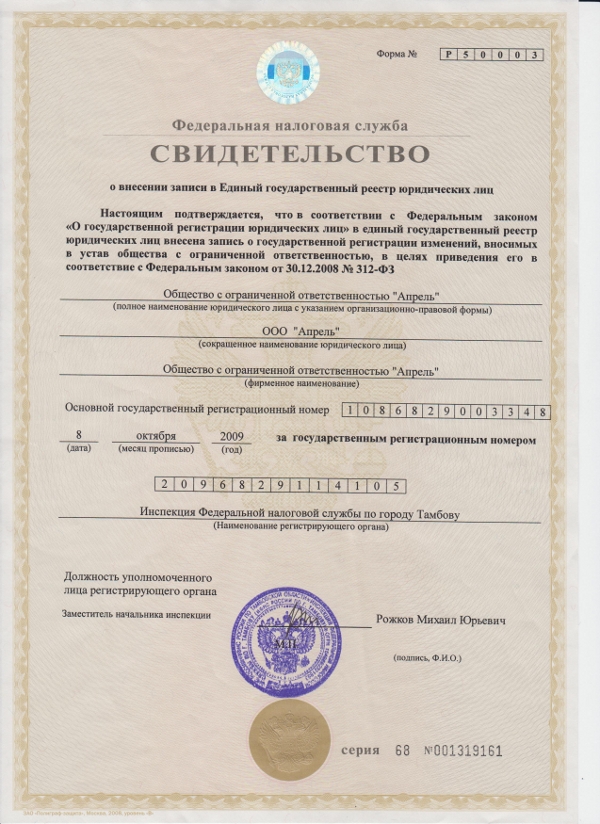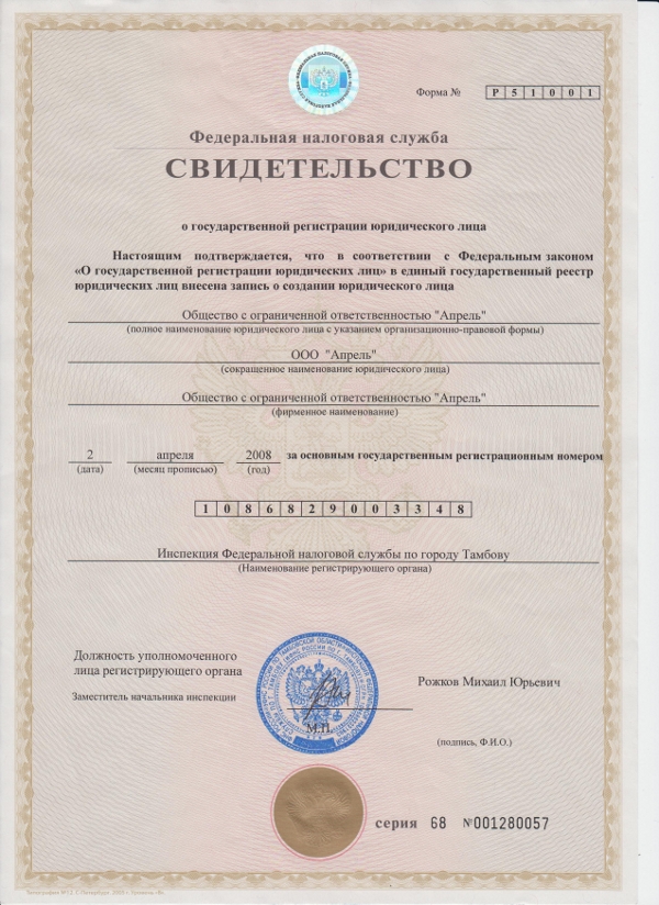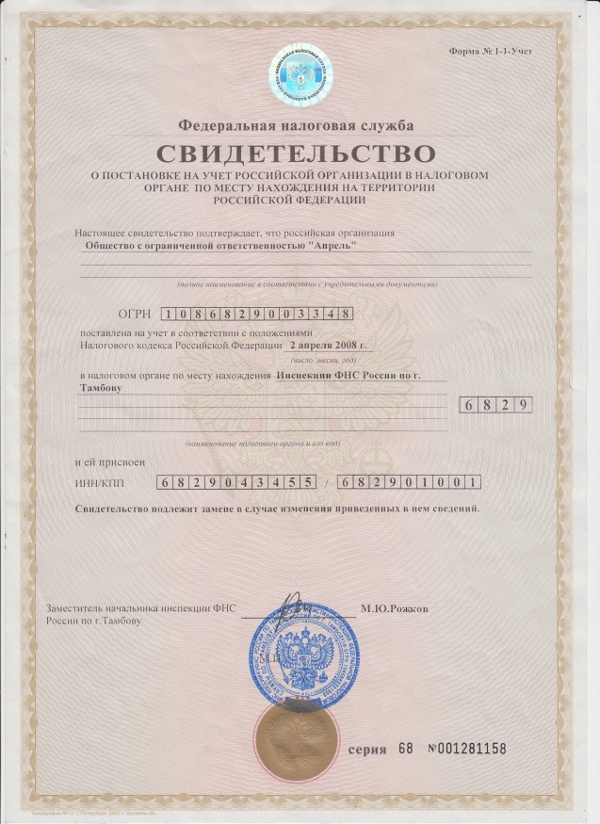ИНН 6829043455 КПП 682901001 ОГРН 1086829003348