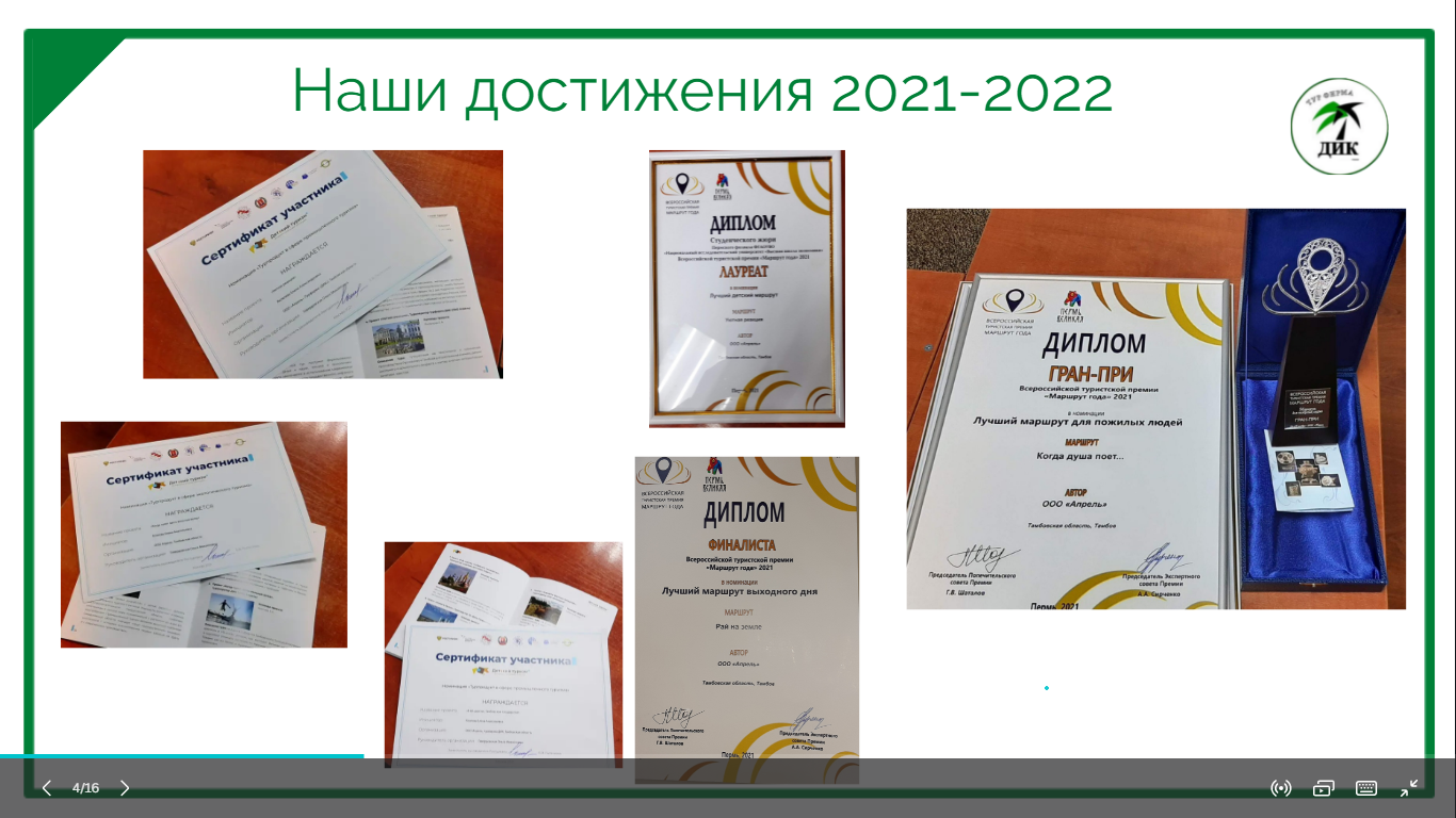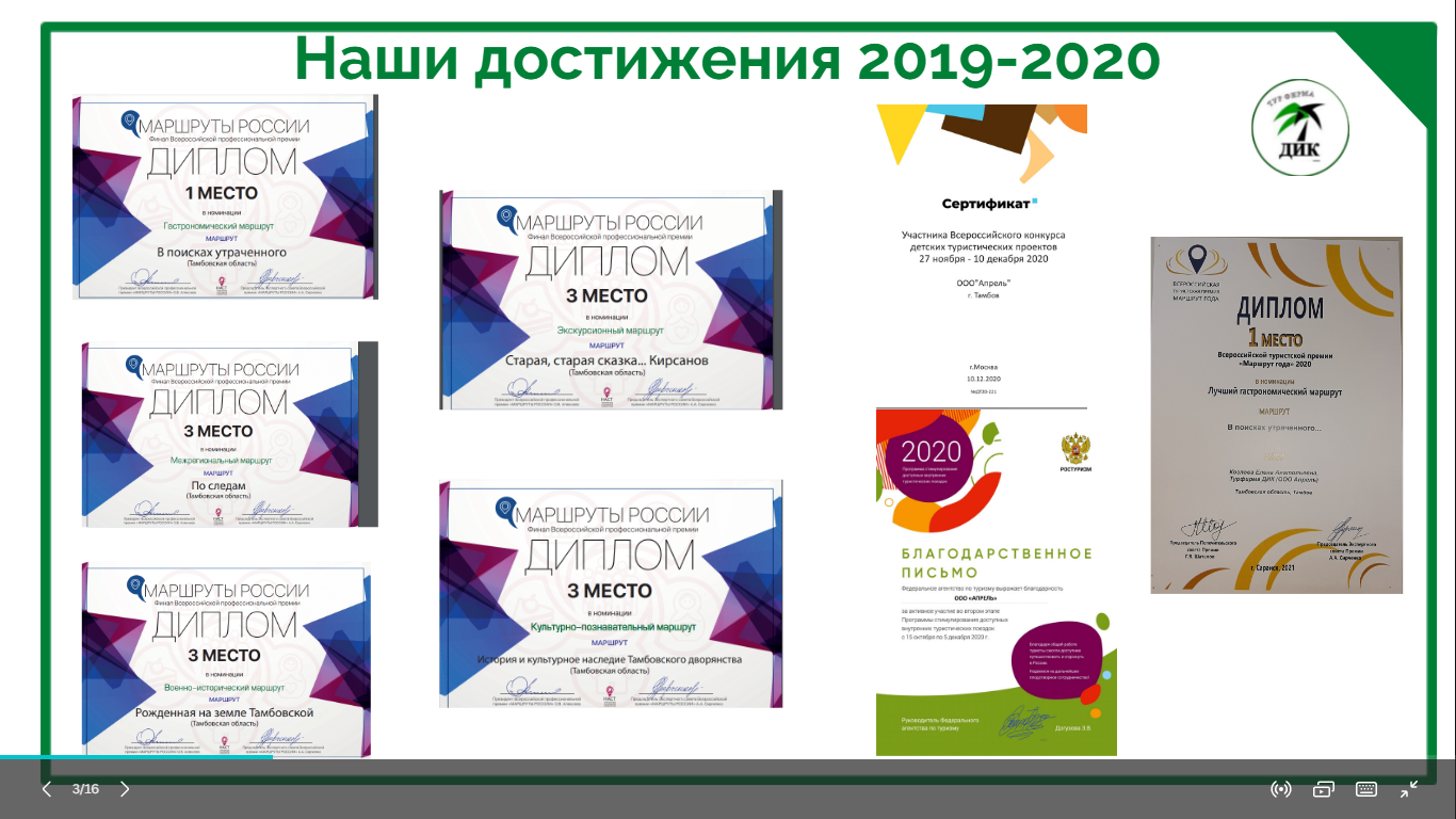 Мы профессиональны - участие в выставках и национальных проектах, выбор надежных партнеров, внедрение новых технологий, дружный коллектив - все это позволяет нам развиваться и чувствовать себя нужными. Мы рады, что вносим свой посильный вклад в развитие экскурсионного туризма не только в Тамбовской области, но в России в целом, помогаем людям увидеть сохранившиеся памятники и более подробно узнать историю страны, в которой мы живем, отдохнуть и подлечиться в самых разных уголках планеты, наполнить свою жизнь новыми знаниями и эмоциями.